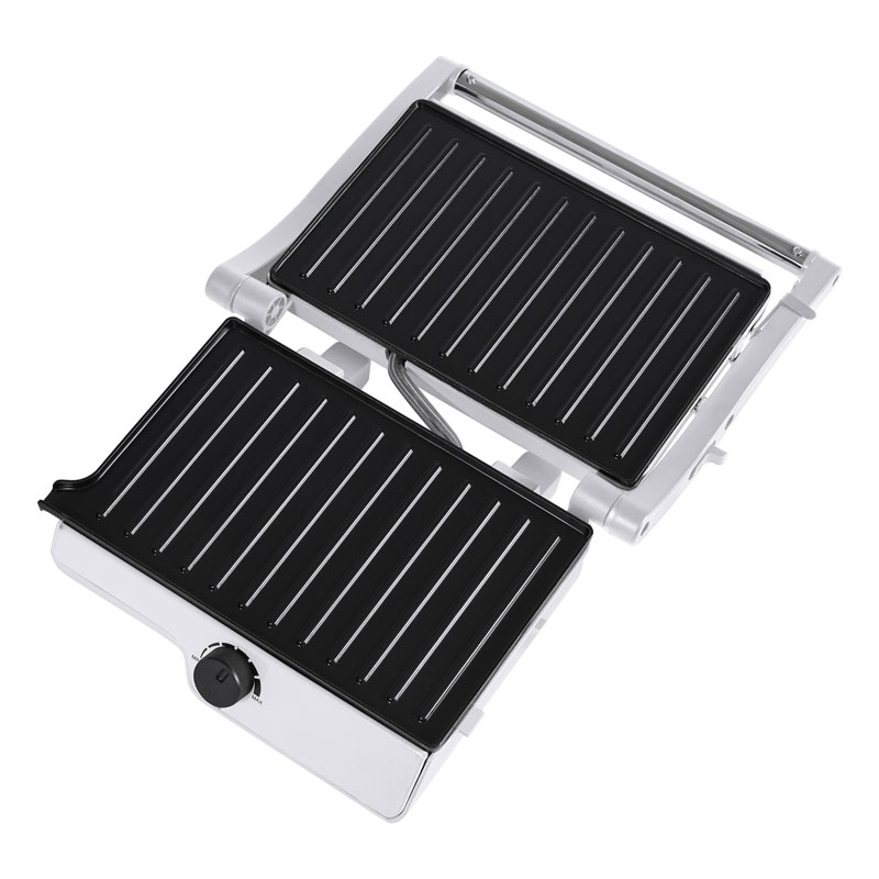 | प्रमुख विशेषताऐं | कूल-टच सेफ हैंडल, नॉन-स्टिक कोटिंग प्लेट, फ्लोटिंग हिंज सिस्टम, 180° ओपन ग्रिल मोड, ऑयल ड्रिप डिजाइन, पावर ऑन और रेडी लाइट्स |